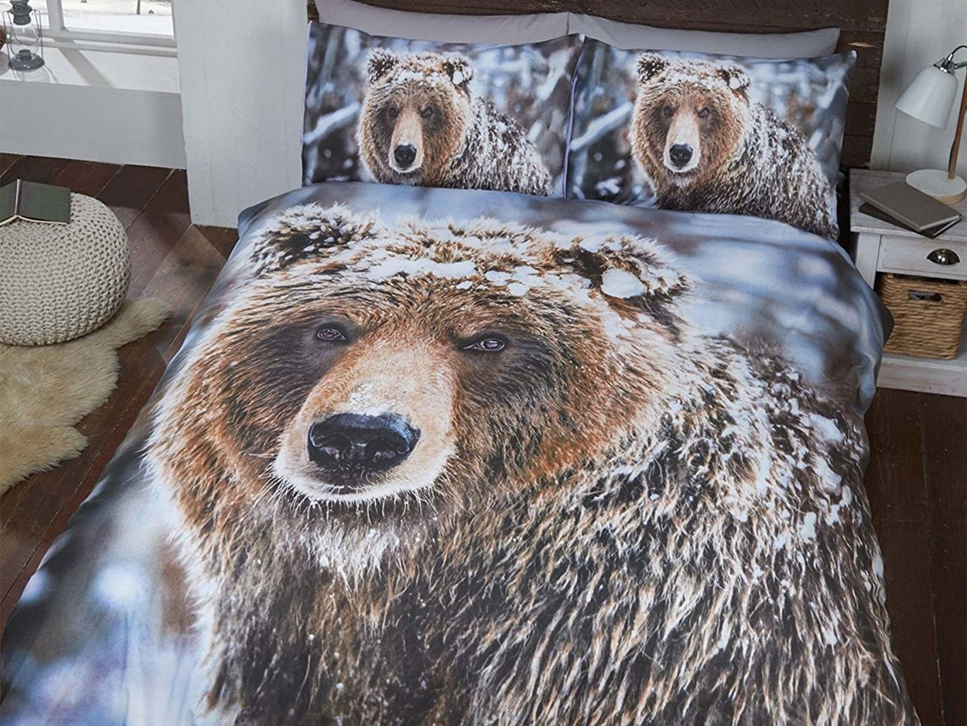 This eye catching bear photographic print will add a unique and quirky touch to your bedroom. Created using the very latest in print technology, this bold design has been carefully printed onto superb easy care fabric
